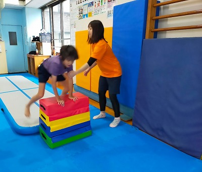 現在は、伸身前宙・ロンダートバク転宙返り・蹴上がりを目標に、日々練習に励んでおられます!